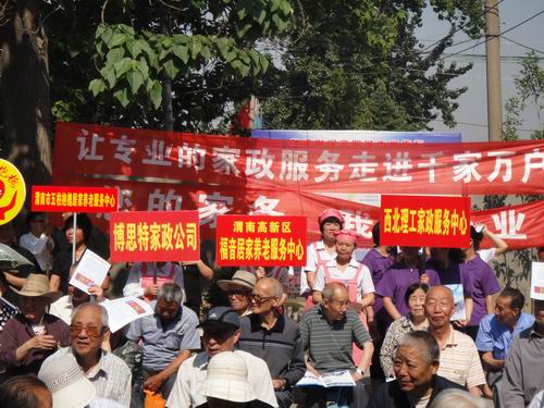 | 2013年6月4日上午,由渭南市民政局、渭南市老齡辦、臨渭區(qū)民政局、臨渭區(qū)老齡辦等主辦的居家養(yǎng)老服務(wù)信息平臺儀式在四號社區(qū)正式啟動。渭南市博思特家政服務(wù)有限公司作為社區(qū)服務(wù)企業(yè)參加了啟動儀式。