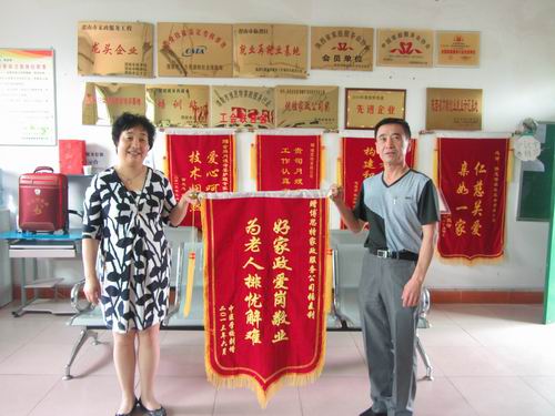 2013年6月10日早10點,家住杜化路中醫(yī)學校小區(qū)的客戶劉軍來到博思特家政服務有限公司,給家政服務員張麥利女士送來一面寫有“好家政愛崗敬業(yè),為老人排憂解難”的錦旗。