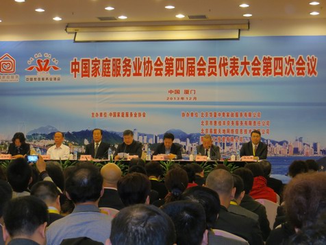 在全國(guó)人民認(rèn)真學(xué)習(xí)領(lǐng)會(huì),全面貫徹落實(shí)黨的十八界三中全會(huì)精神的新形勢(shì)下,中國(guó)家庭服務(wù)業(yè)協(xié)會(huì)第四屆第四次會(huì)員代表大會(huì),與2013年12月16日,在廈門隆重開幕。上午9時(shí),《中華人民共和國(guó)國(guó)歌》在華僑大廈的上空久久回蕩?扇菁{千人的會(huì)議室里座無(wú)虛席,來(lái)自全國(guó)各地249個(gè)單位的代表們激情高昂,會(huì)場(chǎng)上掌聲雷動(dòng),此起彼伏。