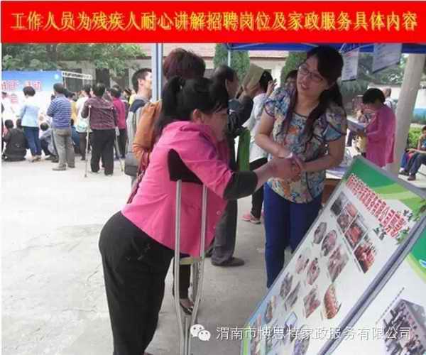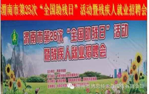 (博思特最新播報(bào))2015年5月17日(周日)上午8:00渭南市殘聯(lián)在市殘疾人綜合服務(wù)中心(香港1號(hào)向東100米北)舉辦第25次全國(guó)助殘日暨殘疾人就業(yè)招聘會(huì),渭南市博思特家政服務(wù)有限公司、渭南市臨渭區(qū)博愛(ài)殘疾人托養(yǎng)中心將前往招聘會(huì)進(jìn)行“辦公文員”、“技能按摩”、“中心護(hù)工”等職位招聘!
