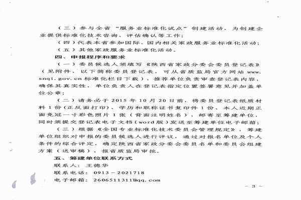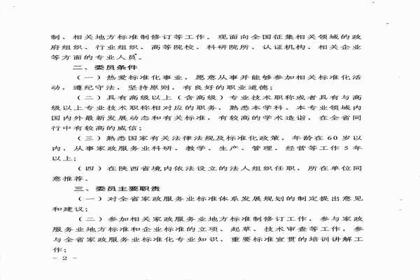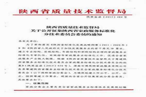 公開(kāi)征集陜西省家政服務(wù)標(biāo)準(zhǔn)化分技術(shù)委員會(huì)
