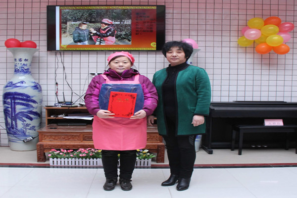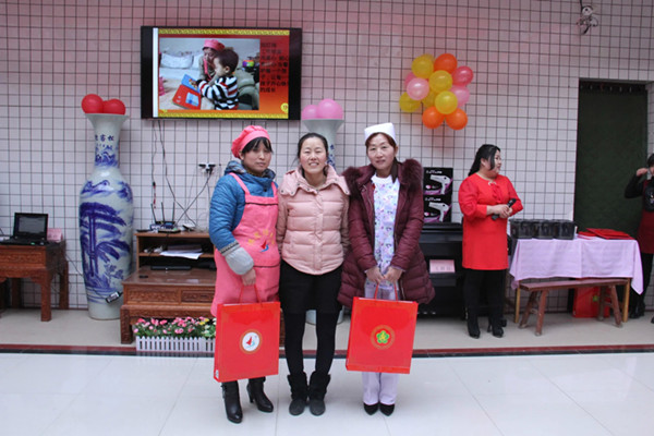渭南市博思特家政集團(tuán)家政部主管賈芳為參與獎獲得者黨紅梅、呂軍利兩 組節(jié)目頒發(fā)證書及價值