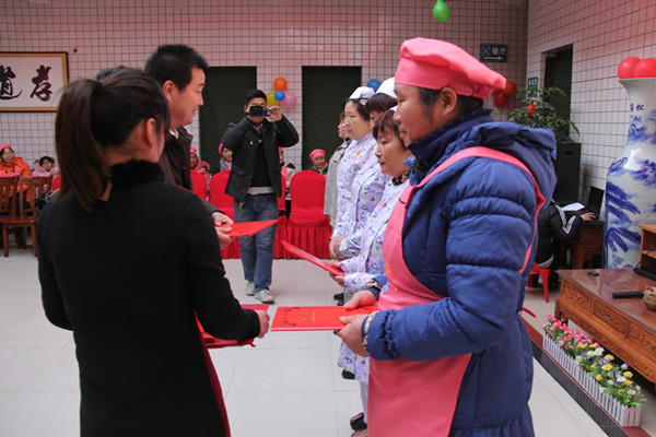 渭南市博思特家政集團(tuán)董事長李玲女士為優(yōu)秀員工頒發(fā)證書和獎品