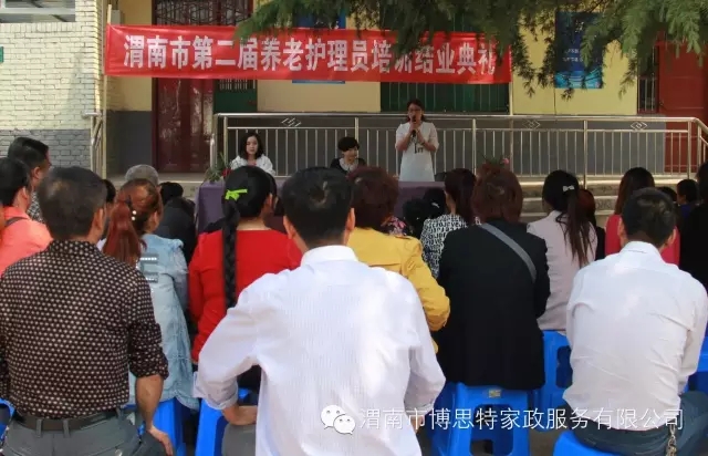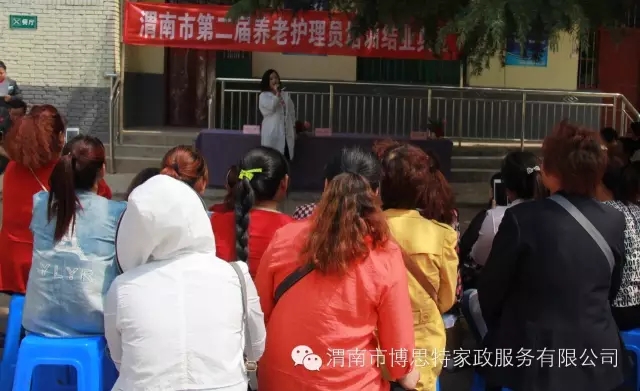 2016年渭南市第二屆養(yǎng)老護(hù)理員結(jié)業(yè)篇章:    渭南市家庭服務(wù)業(yè)協(xié)會(huì)秘書(shū)長(zhǎng)講話片段:  當(dāng)前我國(guó)人口老齡化不斷加快,養(yǎng)老服務(wù)供需矛盾日益突出,養(yǎng)老服務(wù)形勢(shì)嚴(yán)峻、任務(wù)艱巨。習(xí)近平書(shū)記在十八屆五中全會(huì)上強(qiáng)調(diào),我國(guó)人口老齡化態(tài)勢(shì)明顯,2014年60歲以上人口占總?cè)丝诘谋戎匾呀?jīng)超過(guò)15%,老年人口比重高于世界平均水平,對(duì)我國(guó)人口均衡發(fā)展和人口安全提出了新的挑戰(zhàn)。全會(huì)通過(guò)的《十三五規(guī)劃的建議》明確提出,要“積極開(kāi)展應(yīng)對(duì)人口老齡化的行動(dòng),全面放開(kāi)養(yǎng)老服務(wù)市場(chǎng),通過(guò)購(gòu)買(mǎi)服務(wù)、股權(quán)合作等方式支持各類(lèi)市場(chǎng)主體增加養(yǎng)老服務(wù)和產(chǎn)品供給”。這為我們應(yīng)對(duì)人口老齡化、開(kāi)展養(yǎng)老服務(wù)工作、推動(dòng)養(yǎng)老服務(wù)業(yè)健康發(fā)展,做出了頂層設(shè)計(jì)和戰(zhàn)略部署。 2015年11月18日,國(guó)務(wù)院發(fā)布《關(guān)于推進(jìn)醫(yī)療衛(wèi)生與養(yǎng)老服務(wù)相結(jié)合的指導(dǎo)意見(jiàn)》,明確提出,要將康復(fù)、護(hù)理人才作為急需緊缺人才納入國(guó)家相關(guān)培訓(xùn)規(guī)劃,加強(qiáng)專(zhuān)業(yè)技能培訓(xùn)。我市老齡委推舉的養(yǎng)老護(hù)理員培訓(xùn)班是落實(shí)《意見(jiàn)》精神的重要舉措,是博思特集團(tuán)2016年實(shí)施“扶貧攻堅(jiān)”“關(guān)愛(ài)失能老人行動(dòng)”的重要組成部分。舉辦養(yǎng)老護(hù)理員培訓(xùn)班,目的就是要通過(guò)對(duì)基層養(yǎng)老機(jī)構(gòu)的護(hù)理員進(jìn)行系統(tǒng)、科學(xué)的培訓(xùn),切實(shí)提高一線養(yǎng)老護(hù)理員的專(zhuān)業(yè)水平、技能水平和綜合素質(zhì),加快建設(shè)一支規(guī)模宏大、素質(zhì)較高的養(yǎng)老護(hù)理員隊(duì)伍。