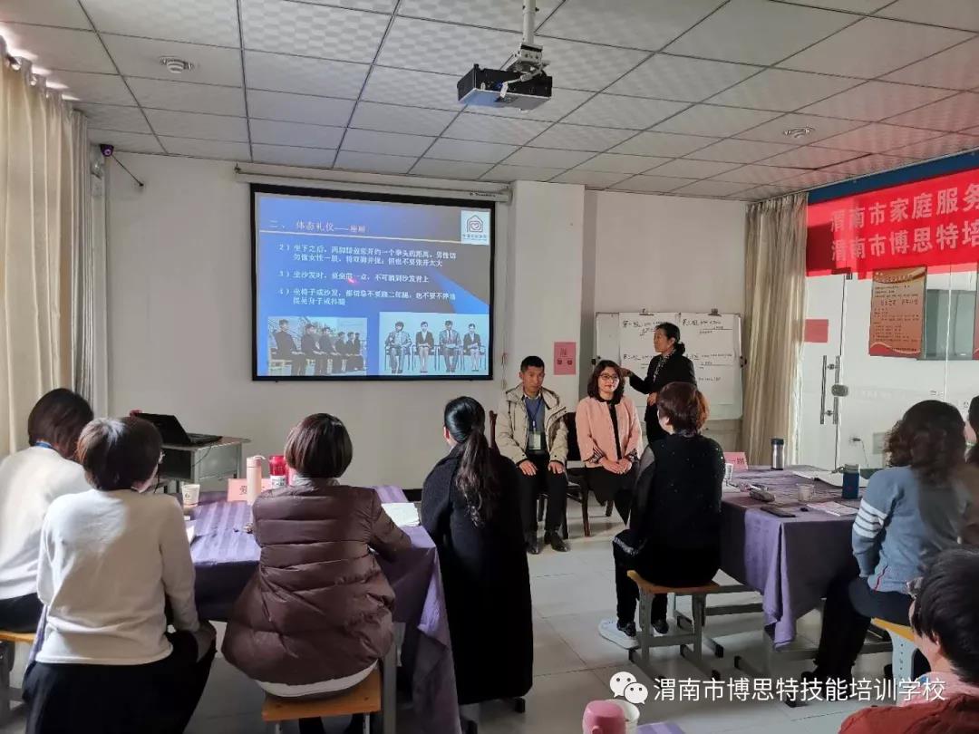 立足華夏之根,追朔文化之源,打造山河圣地,推動(dòng)家政服務(wù)行業(yè)的發(fā)展, 2019年12月29日—31日,由渭南市家庭服務(wù)業(yè)協(xié)會(huì)主導(dǎo),渭南市博思特培訓(xùn) 學(xué)校主辦的首屆“家政服務(wù)師資”培訓(xùn)圓滿收官,此次師資培訓(xùn)為期三天兩夜, 培訓(xùn)特邀全國(guó)實(shí)力派資深專家張承晉、張俊英、劉平良授課,培訓(xùn)采取全封閉 式小班授課模式。通過理論學(xué)習(xí)和實(shí)踐操作相結(jié)合的方式,幫助學(xué)員把握家庭 服務(wù)業(yè)行業(yè)發(fā)展態(tài)勢(shì),了解培訓(xùn)教學(xué)要求,掌握家政服務(wù)業(yè)培訓(xùn)流程、課程設(shè) 計(jì)以及授課方法,培養(yǎng)一支具有較高素質(zhì)的家政服務(wù)師資骨干,承擔(dān)起家政服 務(wù)行業(yè)培訓(xùn)的工作職責(zé),提升家政服務(wù)員隊(duì)伍的整體水平。培訓(xùn)結(jié)束經(jīng)考試考 核合格,可取得全國(guó)通用的高級(jí)講師資格證書,或被市家庭服務(wù)業(yè)列入東府家 政服務(wù)行業(yè)講師師資庫(kù),優(yōu)先安排在該市承擔(dān)家政培訓(xùn)授課工作。